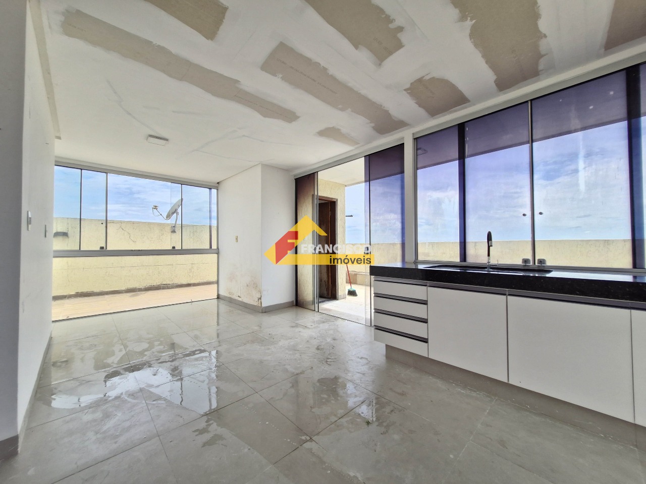 Apartamento de cobertura residencial com 3 quartos, sendo 1 sendo 1 suíte com box e armário com 1 sacada, sala ampla com 2 ambientes com sacada, banheiro social com box e armário, cozinha com armário e bancada em granito, área de serviço com armário, cobertura com, sala conjugada, banheiro social, cozinha com bancada em granito e armário, área externa, 2 vagas de garagem, piso em porcelanato e tabua corrida, prédio com elevador.