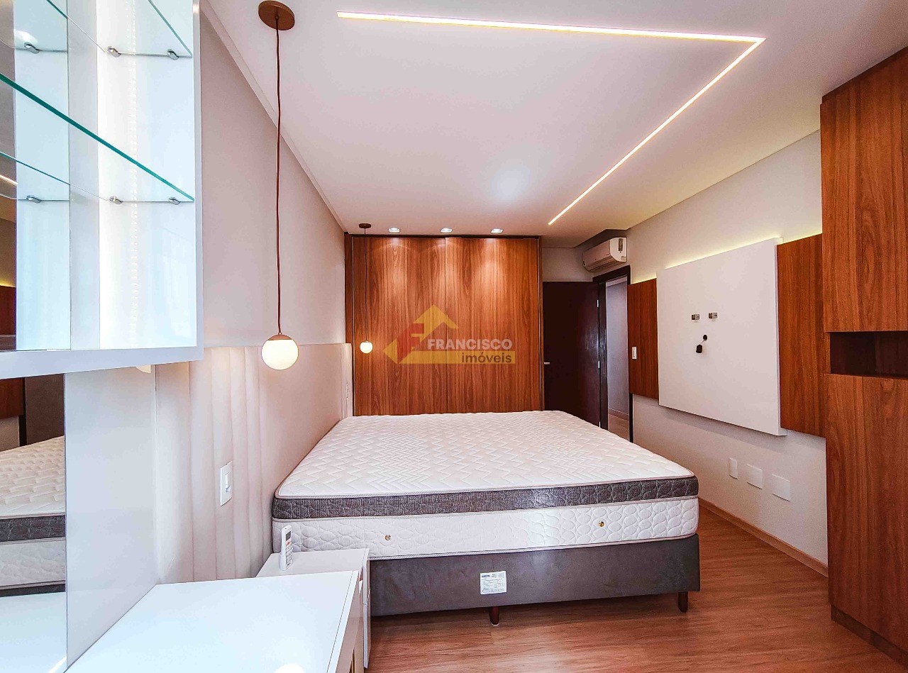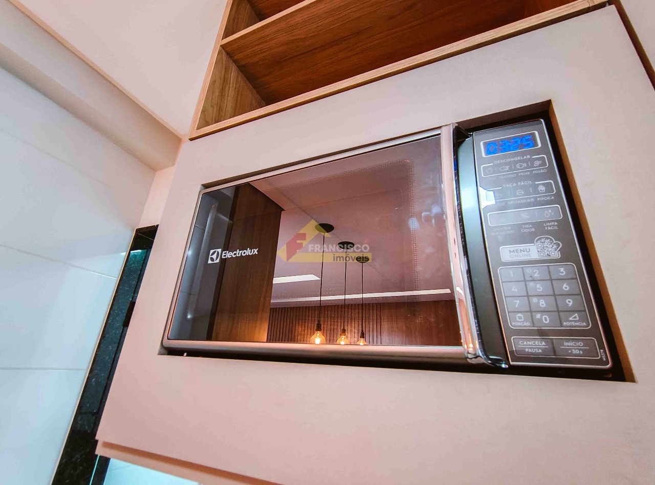 Luxo e conforto, apartamento residencial com 03 quartos, sendo 02 com armários e ar condicionado, suíte com armário e box, sala com painéis em madeira, cozinha planejada com armários, bancada em granito, fogão de bancada, coifa inox, forno elétrico e microondas, banheiro social com armário e box, área de serviço com armario e varal de teto, 02 vagas de garagem, piso em porcelanato e durafloor, prédio com elevador.