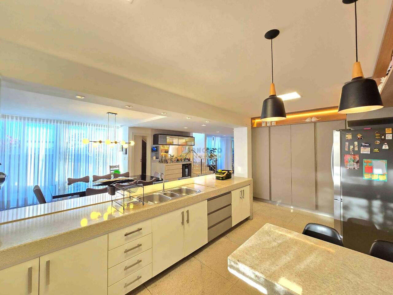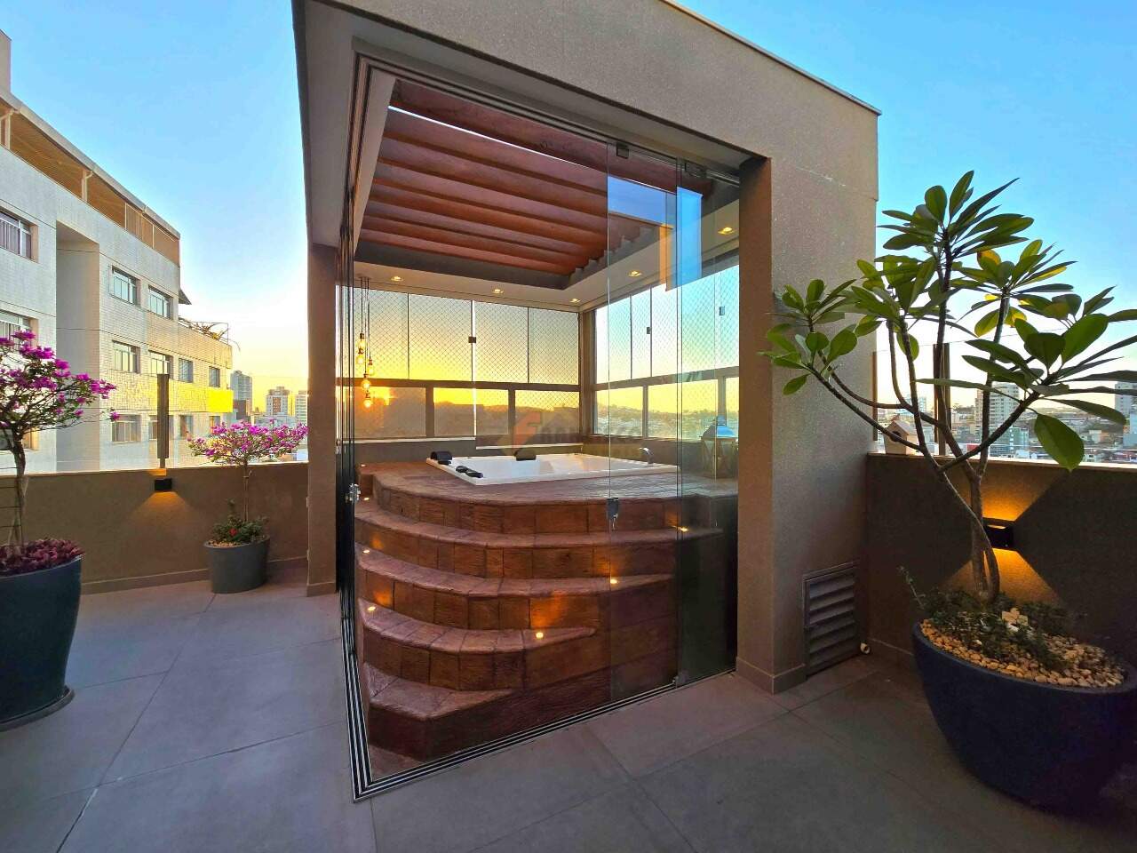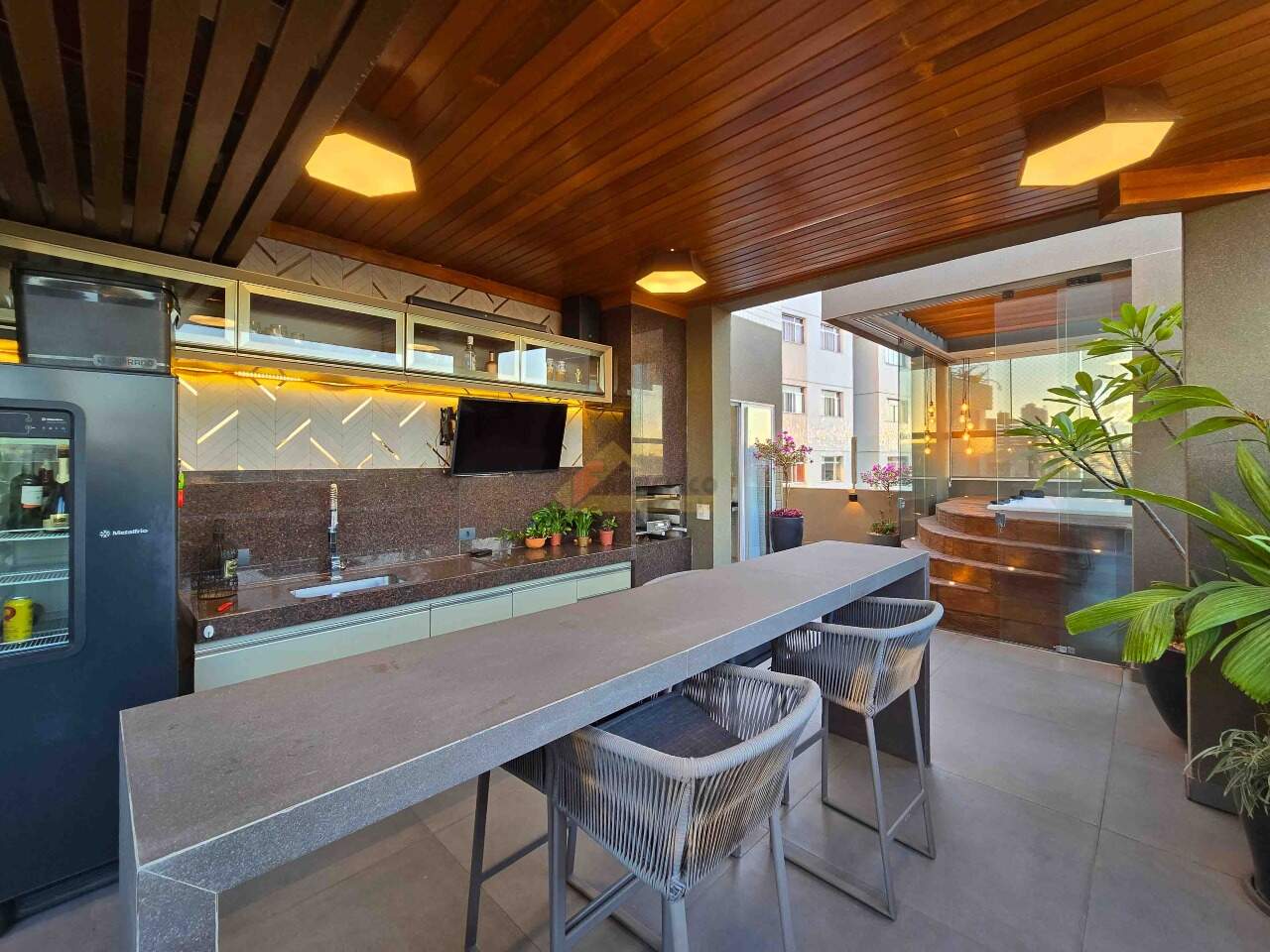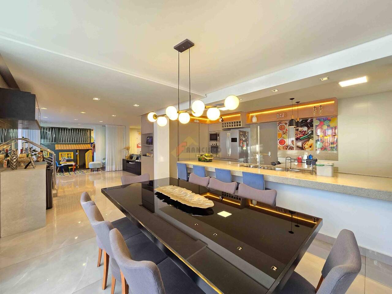 Apartamento de cobertura com localização privilegiada no coração da cidade; imóvel exclusivo com acabamento de altíssimo padrão e ambientes projetados para proporcionar conforto, praticidade e sofisticação. Primeiro pavimento: sala ampla e aconchegante para 02 ambientes, equipada com rack, painel embutido e móveis planejados; cozinha moderna com bancadas em granito, armários sob medida, fogão cooktop, coifa, forno elétrico e micro-ondas; lavabo elegante com pia esculpida em cuba e espelho; lavanderia funcional com armários planejados; espaço kids ideal para crianças; área de lazer privativa composta por cozinha gourmet com armários planejados, churrasqueira, jacuzzi com capacidade para 05 pessoas, ducha e área descoberta, perfeita para momentos de descontração e convivência. Segundo pavimento: 04 suítes amplas e confortáveis, todas equipadas com box em vidro temperado, armários planejados, pia em cuba, espelhos e closet; sala de estar espaçosa com rack e painel embutidos, garantindo praticidade e requinte. O apartamento dispõe de 03 vagas de garagem; todo o acabamento interno conta com rebaixamento em gesso, paredes emassadas, gás canalizado, projeto luminotécnico sofisticado, porcelanato de grande formato nas áreas sociais, piso laminado de madeira nos quartos, ar-condicionado e aquecedor solar, garantindo conforto térmico em todas as estações. O edifício: construção de alto padrão, todo revestido, com elevador, hall de entrada finamente decorado, poço artesiano e sistema de câmeras de segurança, oferecendo mais comodidade, elegância e tranquilidade para seus moradores.