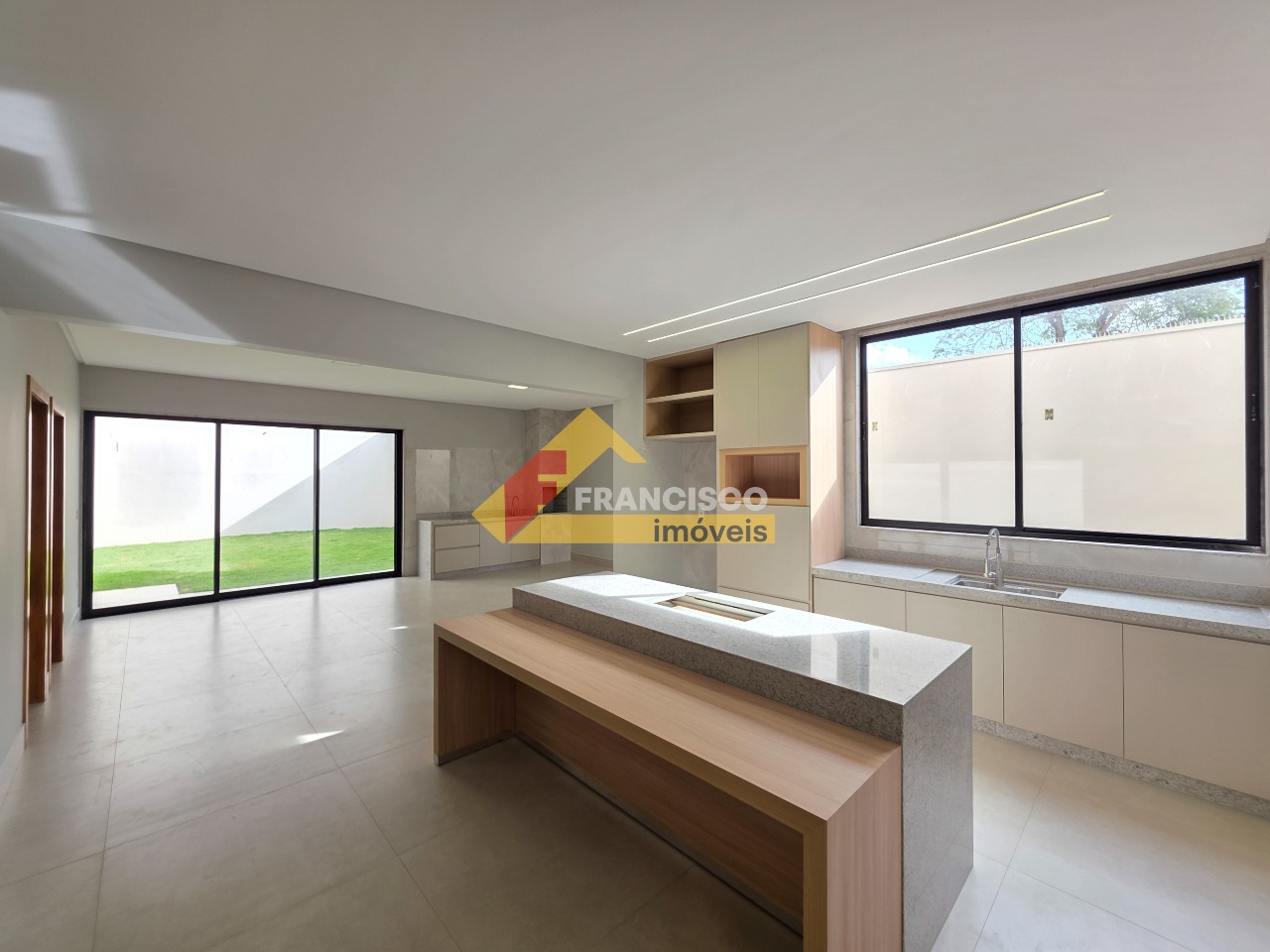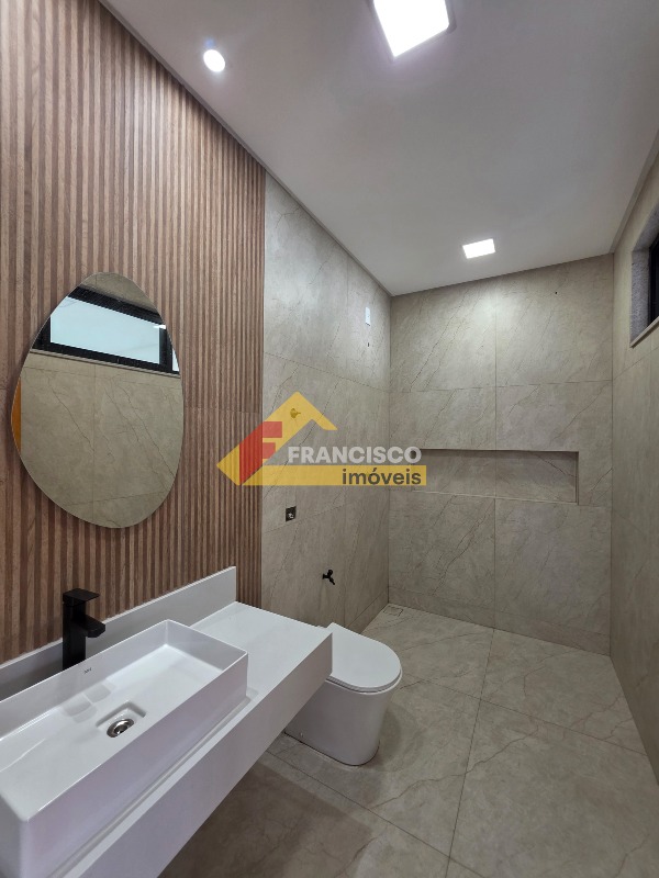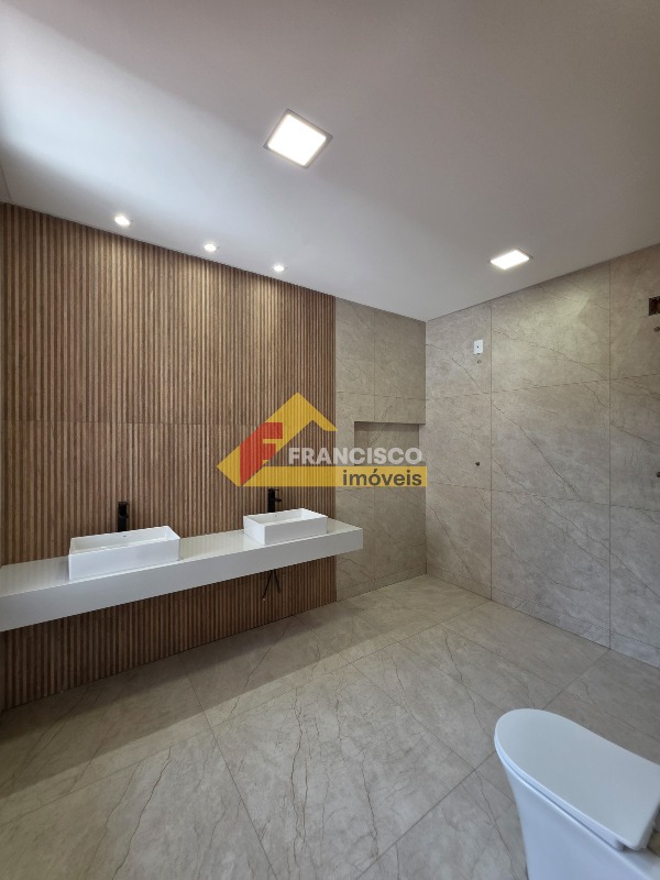 Elegante residência de altíssimo padrão com dois pavimentos, localizada em área privilegiada e acabamento de excelência. Primeiro pavimento: oferece um quarto bem iluminado, ampla sala de estar com configuração para dois ambientes, integrando-se harmoniosamente à cozinha, que conta com bancadas em granito e armários sob medida. O espaço gourmet é totalmente integrado com bancadas em granito, armário planejados e churrasqueira, ideal para receber suas visitas, complementado por um banheiro social com pia esculpida e nicho, lavanderia espaçosa e quintal, trazendo conforto e praticidade. A garagem comporta até três veículos. Segundo pavimento: dispõe de três quartos, incluindo uma ampla suíte master com pia esculpida, nicho, área para closet e varandas privativas, oferecendo conforto e sofisticação. A sala íntima é generosa em espaço e ideal para momentos de descanso, e o banheiro social é equipado com pia esculpida e nicho, em um acabamento que exala elegância. Toda a casa apresenta rebaixamento de gesso, paredes emassadas com acabamento primoroso, piso em porcelanato de grande formato nas áreas sociais e laminado de madeira nos quartos, projeto de iluminação moderno e funcional, além de pré-instalação para aquecimento e ar-condicionado, proporcionando total comodidade e requinte.
