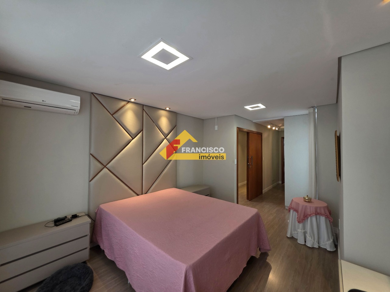 Apartamento de cobertura linear com localização privilegiada e acabamento impecável. Composição: São três quartos com armários planejados, sendo duas suítes coml box em vidro temperado, pia esculpida elegante, nicho, espelho, ar-condicionado e sacada, e uma ampla suíte master com closet, 02 salas espaçosa com móveis sob medida, sendo uma de estar e uma de jantar, ambientes integrados, cozinha é prática e moderna, com bancada em granito, armários planejados, área de lazer com espaço gourmet, área privativa descoberta com jacuzzi, lavabo com pia esculpida e espelho. O banheiro social também conta com box em vidro temperado, pia em cuba, armários planejados, espelho e nicho, garantindo funcionalidade e elegância e lavanderia equipada com armários planejados. O imóvel possui duas vagas de garagem. Acabamento: Apresenta rebaixamento de teto em gesso, paredes emassadas, rodapés embutidos, e um projeto luminotécnico sofisticado e aquecedor solar. O piso em porcelanato acetinado nas áreas sociais e laminado de madeira nos quartos oferece conforto e beleza, completando o ambiente com um toque de classe. Prédio: A edificação imponente é totalmente revestida e dispõe de elevador, salão de festas elegante, espaço gourmert, hall de entrada decorado e sistema de segurança com câmeras, oferecendo conforto, segurança e exclusividade.