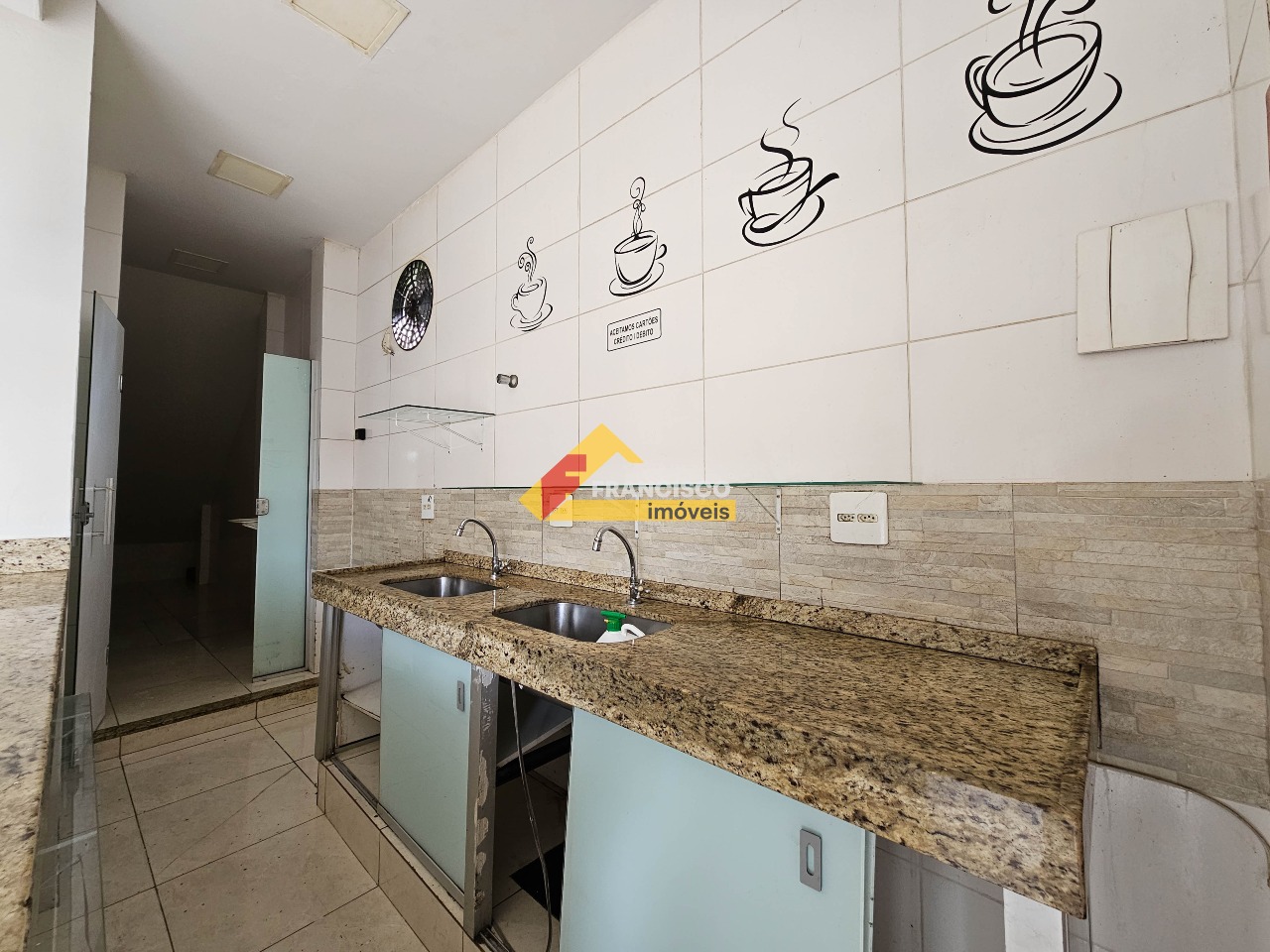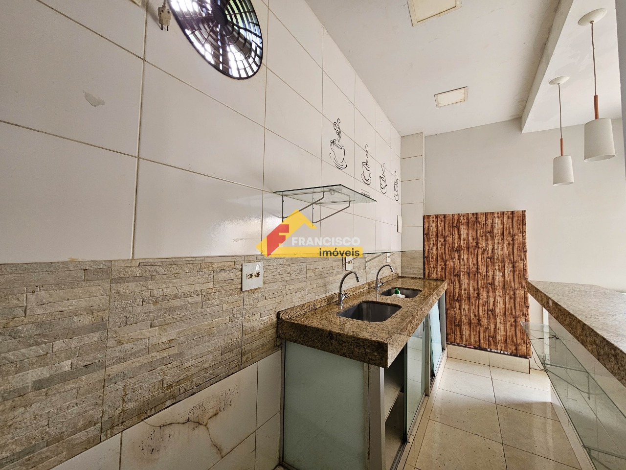 Loja comercial com aproximadamente 50 m² possuindo balcão, pia com armário, banheiro social, lavabo, área de serviço.