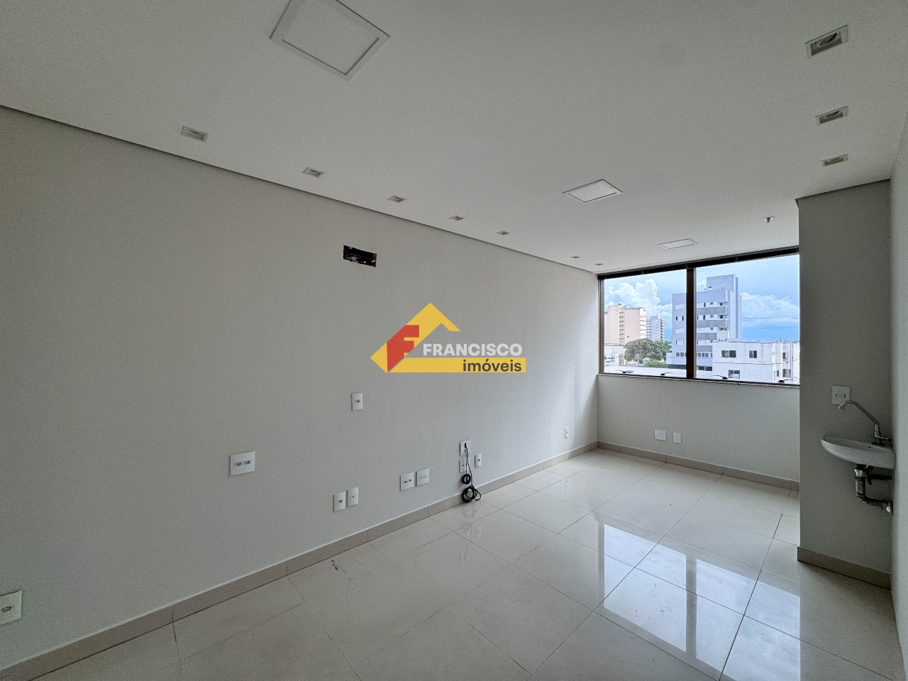 Sala comercial com excelente localização na região central com aproximadamente 59,39m² possuindo sala para recepção, sala para atendimento, piso em porcelanato, cozinha com pia e 01 banheiro. Prédio com 03 elevadores, 04 banheiros por andar sendo 02 com acessibilidade e portaria.