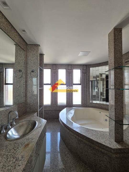 Amplo apartamento de cobertura triplex, com localização privilegiada no centro da cidade; projeto exclusivo que alia sofisticação, conforto e funcionalidade. Primeiro pavimento: composto por 04 quartos amplos com armários planejados, sendo 02 suítes com box em vidro temperado e espelhos; 01 suíte master com closet, ar-condicionado e hidromassagem; 02 salas, sendo uma com móveis planejados e outra ampla para até 03 ambientes, proporcionando excelente integração e circulação; lavabo elegante; cozinha funcional com bancadas em granito e armários sob medida; ampla área de serviço com armários planejados; despensa; banheiro e quarto de serviço; banho social completo com box em vidro temperado, pia em cuba, armários planejados e espelho. Segundo pavimento: 01 suíte confortável com box em vidro temperado, armários planejados e espelho; sala espaçosa para 02 ambientes com móveis planejados; lavabo com pia em cuba e espelho; ampla área privativa descoberta; espaço de lazer completo com cozinha gourmet equipada com armários planejados, churrasqueira, piscina, ducha e sauna, ideal para momentos de lazer e convivência. Terceiro pavimento: sala ampla integrada à cozinha com bancadas em granito; extensa área privativa descoberta, perfeita para criação de rooftop, espaço gourmet ou área de contemplação, com vista privilegiada da cidade. Apartamento com acabamento diferenciado; rebaixamento em gesso; paredes emassadas; iluminação em LED; pisos em granito e tábua corrida; sistema de aquecimento solar; 02 vagas de garagem. Prédio totalmente revestido; portaria inteligente; sistema de segurança com câmeras; 02 elevadores; salão de festas; academia equipada, oferecendo conforto, segurança e valorização patrimonial.