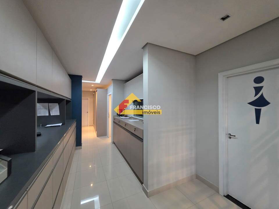 Sala comercial de alto padrão, finamente decorada, com posição nascente, garantindo excelente iluminação natural e maior conforto térmico ao longo do dia. Localizada em um dos bairros mais valorizados da cidade, está situada em prédio comercial moderno e imponente, totalmente revestido, com fachada em pele de vidro, hall de entrada decorado com requinte, sistema completo de segurança com monitoramento, dois elevadores modernos e acessibilidade para pessoas com mobilidade reduzida. O imóvel possui aproximadamente 135,00 m², distribuídos em três salas unificadas, oferecendo amplitude e versatilidade para diversos tipos de negócios. Conta com sala de espera equipada com móveis planejados, cozinha funcional com bancadas em granito e armários sob medida, além de dois lavabos elegantes com pia esculpida, armários planejados e espelhos. Apresenta piso em porcelanato polido, rebaixamento em gesso com projeto luminotécnico refinado, móveis planejados de alta qualidade, pendentes decorativos que agregam sofisticação ao ambiente, paredes emassadas, persianas instaladas e ar-condicionado, garantindo conforto e praticidade. Dispõe ainda de três vagas de garagem, diferencial importante para clientes e colaboradores.