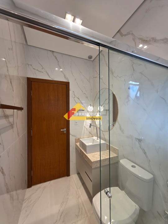 Casa nova com alto padrão de acabamento e excelente localização, projetada para oferecer conforto, sofisticação e funcionalidade em cada detalhe. O imóvel possui 03 quartos, sendo 01 suíte ampla com espaço para closet, equipada com box em vidro temperado, pia com cuba sobreposta, armários planejados, espelho, pendentes e nicho decorativo. A sala é ampla e elegante, com porta em madeira maciça e lustres, integrada de forma harmoniosa à cozinha planejada, que conta com bancadas em granito de alta qualidade e armários sob medida, proporcionando praticidade e modernidade ao ambiente. O banheiro social segue o mesmo padrão de acabamento, com pia em cuba sobreposta, box em vidro temperado, armários planejados, espelho, pendentes e nicho decorativo. A casa dispõe ainda de área de serviço independente e quintal totalmente revestido, ideal para quem busca praticidade e facilidade na manutenção do dia a dia. O imóvel oferece 04 vagas de garagem e se destaca pelos acabamentos sofisticados, como teto rebaixado em gesso com moderno projeto luminotécnico, paredes emassadas com rodapés embutidos e piso em porcelanato polido de grande formato, que valorizam ainda mais os ambientes. A fachada é moderna, revestida e bem iluminada, trazendo imponência e valorização ao imóvel. As portas e janelas em esquadrias de madeira maciça com venezianas, além de portão eletrônico e interfone, garantem charme, segurança e durabilidade. O imóvel também possui pré-disposição para aquecimento solar e ar-condicionado, agregando ainda mais conforto e valorização. Uma excelente oportunidade para quem busca uma casa nova, moderna e pronta para morar, com qualidade, elegância e o conforto que sua família merece.
