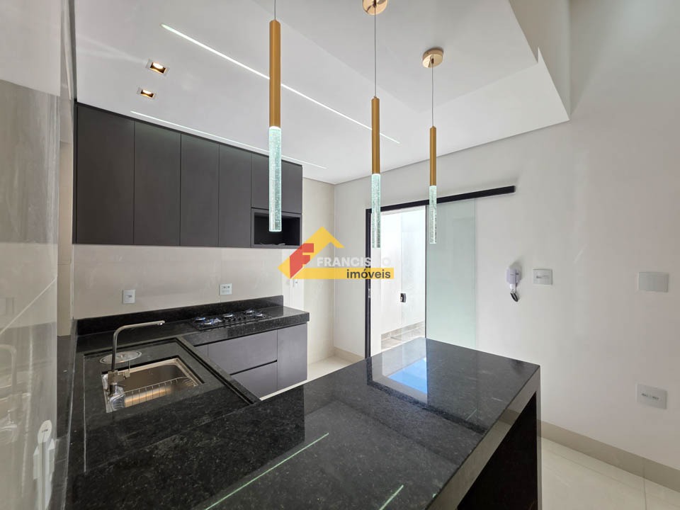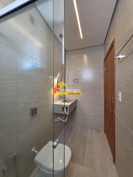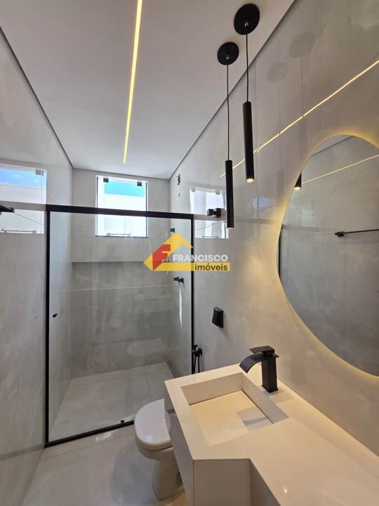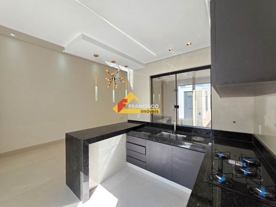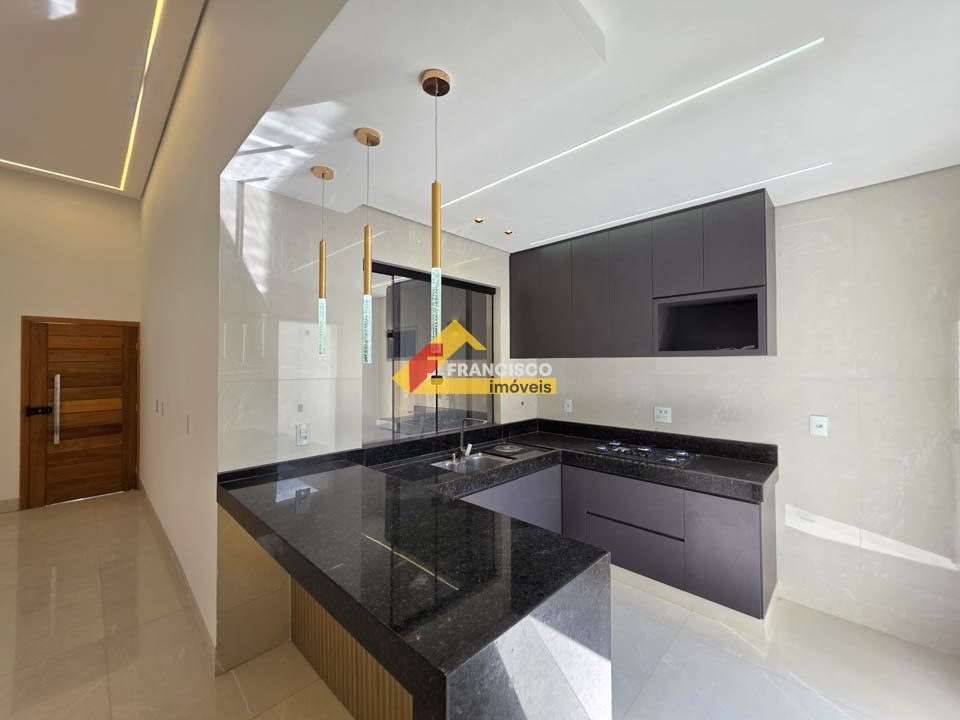 Casa nova com excelente localização em bairro valorizado e muito procurado, próximo ao centro. Imóvel com acabamento primoroso, arquitetura moderna e ambientes bem distribuídos. Composta por 03 quartos amplos, sendo 01 suíte master com box em vidro temperado, espelho, nicho embutido, pia esculpida, iluminação em pendentes e espaço reservado para closet. Sala espaçosa com pé-direito alto, lustres decorativos, fechadura eletrônica e porta em madeira maciça, proporcionando sofisticação e segurança, integrada à cozinha moderna com bancadas em granito, fogão cooktop instalado e iluminação em pendentes. Banheiro social elegante com box em vidro temperado, nicho, pia esculpida, espelho e iluminação em pendentes. O imóvel conta ainda com ampla lavanderia independente. Na área externa, possui área de lazer completa com espaço gourmet, bancadas em granito, churrasqueira, ducha e jacuzzi para quatro pessoas, ideal para momentos de lazer e confraternização. Conta também com lavabo com pia esculpida e espelho, além de quintal todo revestido, garantindo mais praticidade na manutenção. Dispõe de 02 vagas de garagem. A casa possui rebaixamento em gesso com detalhes decorativos, paredes emassadas com acabamento fino, projeto luminotécnico moderno automatizado com Alexa, piso em porcelanato polido de grande formato nas áreas sociais e laminado de madeira nos quartos. Possui ainda pré-disposição para ar-condicionado nos quartos, aquecedor solar, sistema de proteção contra furtos em toda a casa, tomada para carro elétrico e fachada moderna com revestimento de destaque, valorizando ainda mais o imóvel.